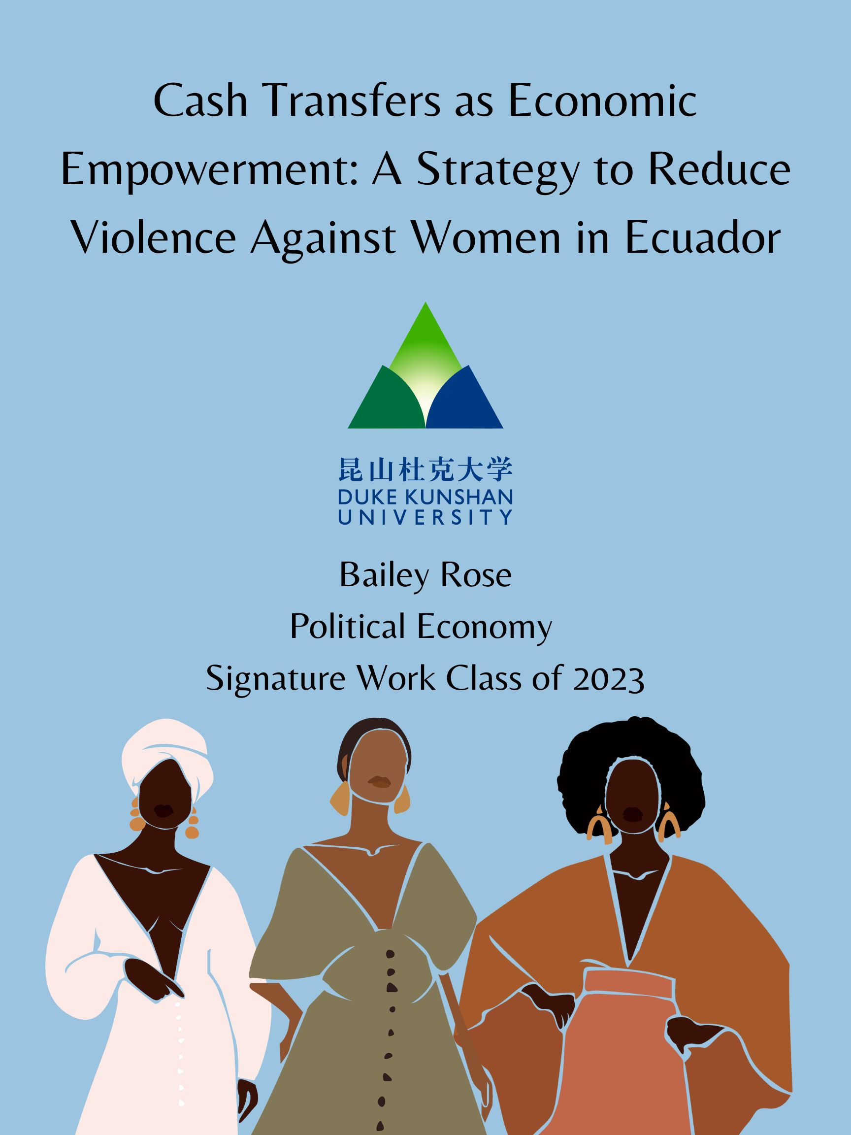 | In Ecuador, more than 60% of women have experienced violence, and an estimated 87% of violence against women is perpetrated by an intimate partner. There also exists major income inequality throughout Ecuador, where it is estimated that women’s wages are 26% lower than men’s, and women’s labor force participation rate is 42% lower than men’s. This qualitative study explores the relationship between gender financial inequality and intimate partner violence in Ecuador, as well as whether direct cash transfers to women are an effective strategy for preventing and reducing rates of intimate partner violence. This research was conducted in the context of the work of the Ecuadorian Center for the Promotion and Action of Women (CEPAM), a non-governmental organization that works to promote the rights of women, including gender equality and violence prevention. Research was conducted through the researcher’s work experience at CEPAM, interviews of CEPAM employees, a review of literature both within and outside of Ecuador, and analysis of past studies of cash transfers as a method to reduce intimate partner violence. The study concludes that direct cash transfers combined with case management should be provided to survivors of violence, as they have been found to reduce violence more than case management alone by expanding women’s economic opportunities and reducing their financial dependence on men. |