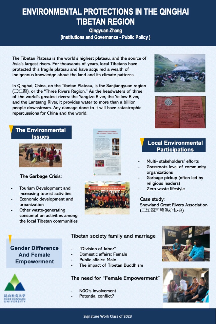 Trying to intergrade both perspectives from Cultural Anthropology and Public Policy, this ethnographic paper studies the Tibetan communities’ environmental protection efforts in Qinghai, China. The paper uses the environmental implementation projects of several local NGOs as case studies and discusses the current status of Tibetan women’s participation in modern environmental protection actions. It aims to analyze the influencing factors behind the scene, the impact of such a gender model on environmental protection actions in Tibetan areas in general, and the potential problems behind it.