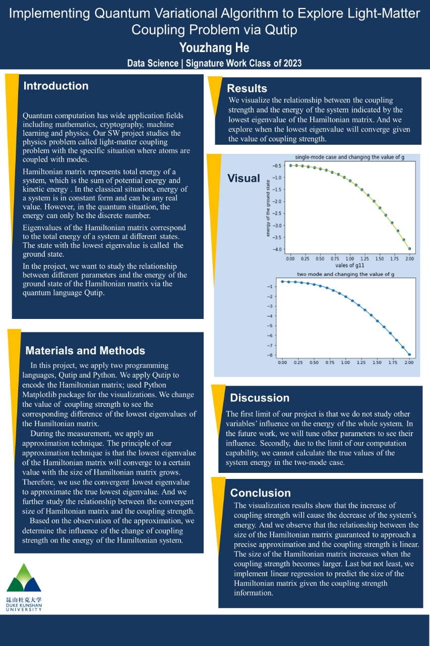 In the project, we combine the knowledge of math, physics and computer science together to study light-matter coupling problem. We first encode the Hamiltonian matrix via the quantum language, Qutip. Then, we study the change of system energy represented by the eigenvalue related to the ground state of the Hamiltonian matrix when tuning different parameters. We further determine the influence of different parameters on Hamiltonian system. Moreover, during the measurement of eigenvalues, we apply the approximation method, by adjusting the size of Hamiltonian matrix, to save the computation cost. We next make further innovative improvements by exploring the numerical relationship between the light-matter coupling constant and corresponding size of Hamiltonian matrix with more accurate approximation. Based on the exploration result, we finally apply linear regression to predict corresponding size of Hamiltonian matrix with better approximation given the value of light-matter coupling constant.