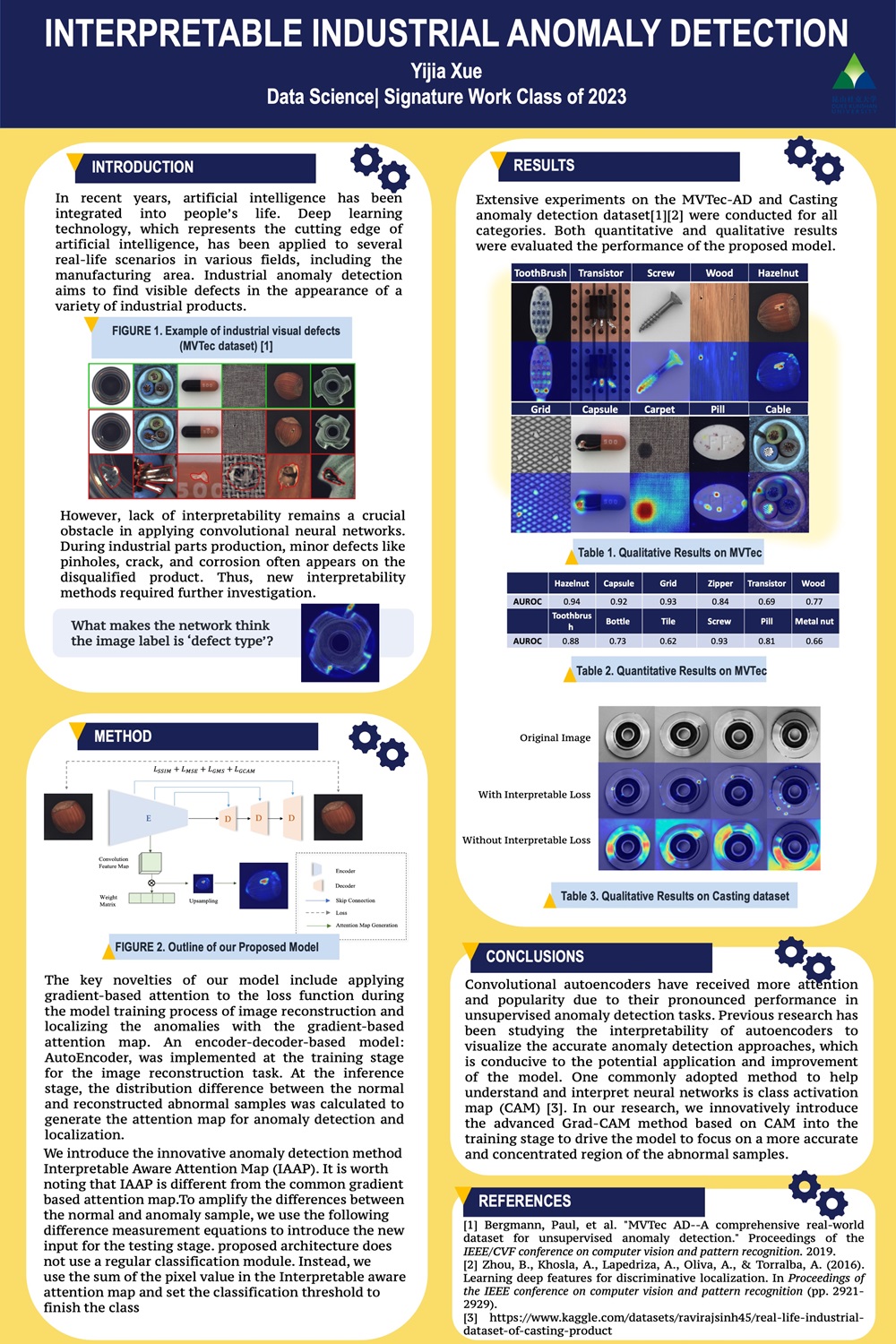 | This project presents a novel approach to industrial visual defect detection and localiza‐ tion using an interpretable deep learning‐based algorithm, Interpretable Aware Au‐ toencoder (IAAE). The proposed algorithm aims to overcome the limitations of tra‐ ditional anomaly detection methods by leveraging the power of deep learning while maintaining interpretability and scalability. The IAAE algorithm is designed to detect and localize visual defects in various industrial products, including textiles, electronic components, pharmaceuticals, and construction materials. The project provides a detailed description of the IAAE algorithm, including its architec‐ ture, training procedure, and evaluation metrics. The experimental findings obtained through the proposed network are presented in this paper. The datasets used for train‐ ing and testing the IAAE algorithm are described in detail. The comparative results show that the proposed algorithm outperforms baseline anomaly detection methods in terms of accuracy and interpretability. The qualitative results obtained from the experiments demonstrate that the IAAE al‐ gorithm can effectively detect and localize visual defects in various industrial prod‐ ucts. The proposed algorithm has significant potential for various industrial applica‐ tions, including quality control, product inspection, and defect prevention. Overall, this paper provides a comprehensive analysis of the proposed approach to industrial visual defect detection and localization using an interpretable deep learning‐based al‐ gorithm |