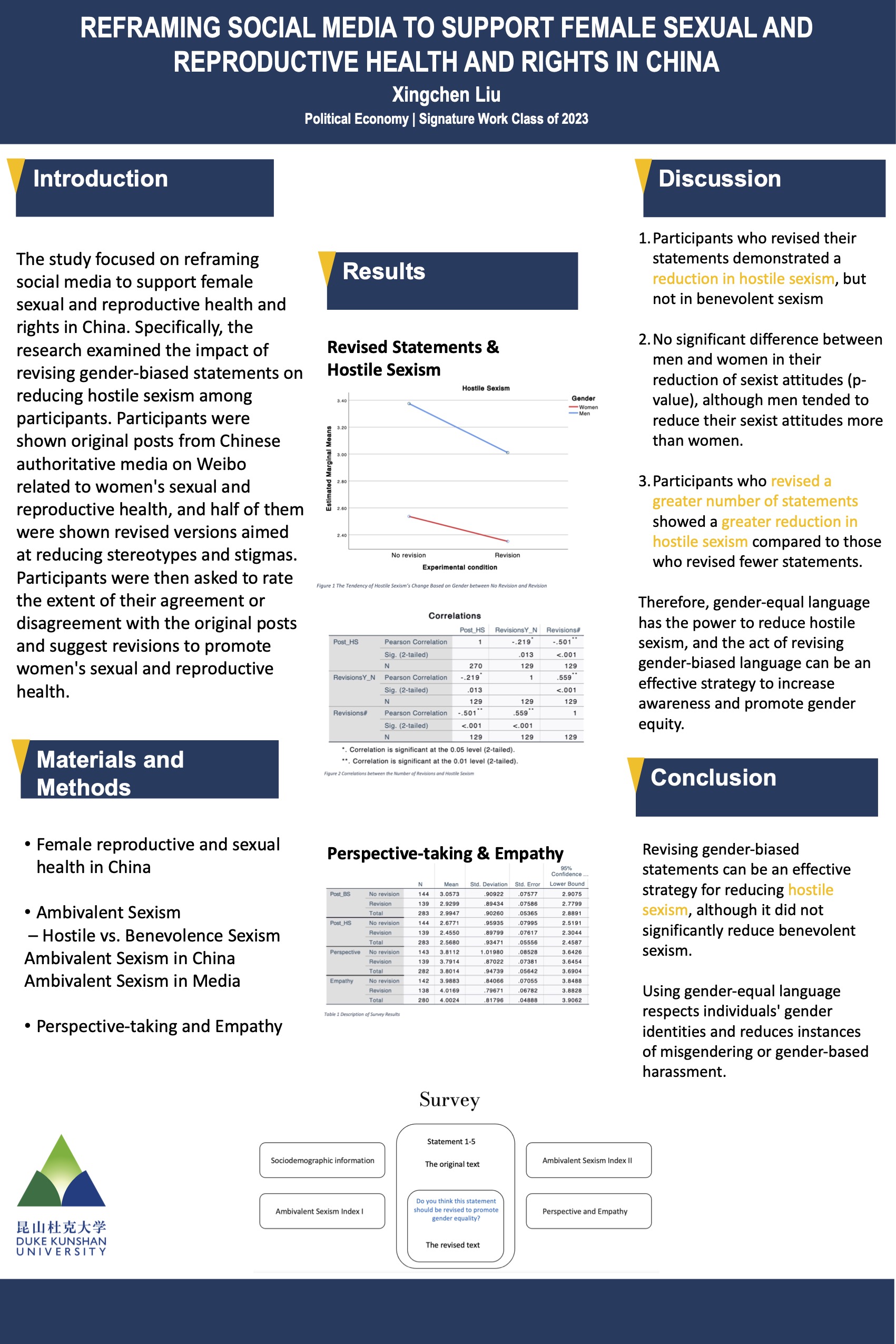 The study focused on reframing social media to support female sexual and reproductive health and rights in China. Specifically, the research examined the impact of revising gender-biased statements on reducing hostile sexism among participants. Participants were shown original posts from Chinese authoritative media on Weibo related to women’s sexual and reproductive health, and half of them were shown revised versions aimed at reducing stereotypes and stigmas. Participants were then asked to rate the extent of their agreement or disagreement with the original posts and suggest revisions to promote women’s sexual and reproductive health.
