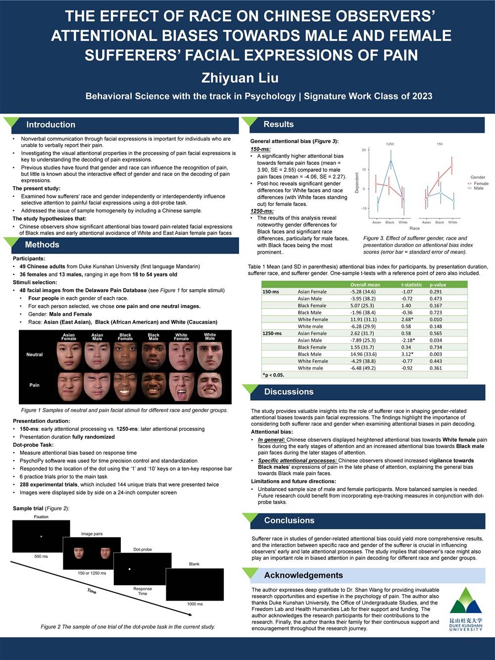 Zhiyuan Liu majors in Behavioral Science, Psychology. His research interests include cognitive biases, pain recognition, and attentional allocations.