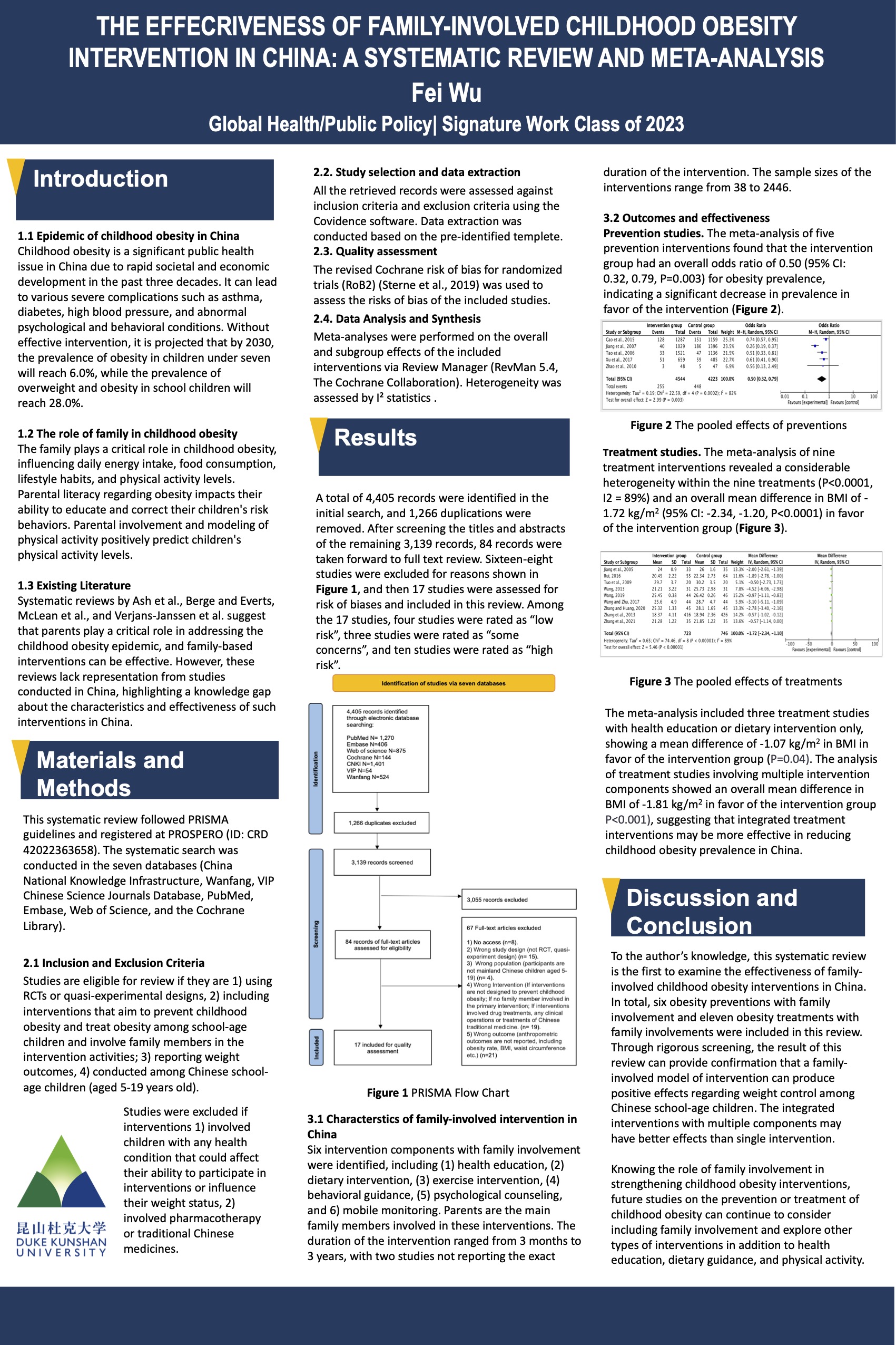 This project is a systematic review and meta-analysis to examine the overall effectiveness of family-involved childhood obesity interventions in China. The finding of this study supports a family-involved model of intervention in which it produced positive effects regarding weight control among Chinese school-age children.