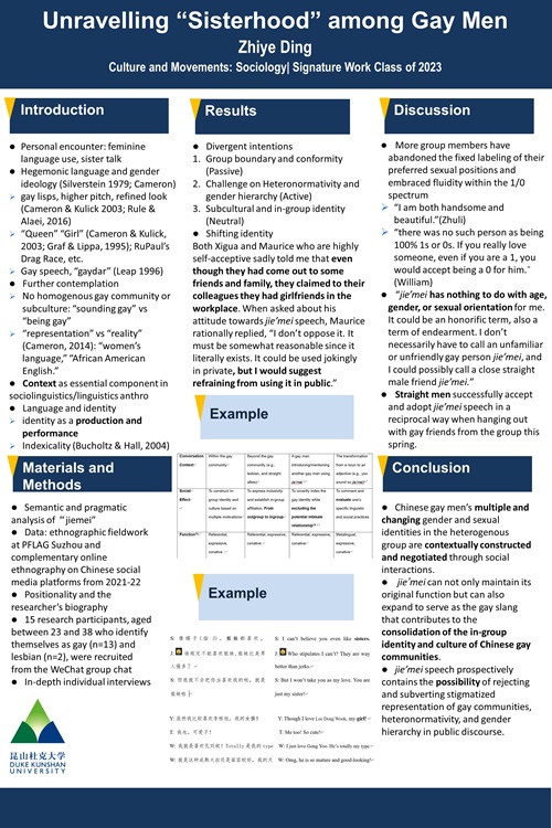 Zhiye Ding is a senior majoring in Cultures and Movements with the track of sociology at Duke Kunshan University.