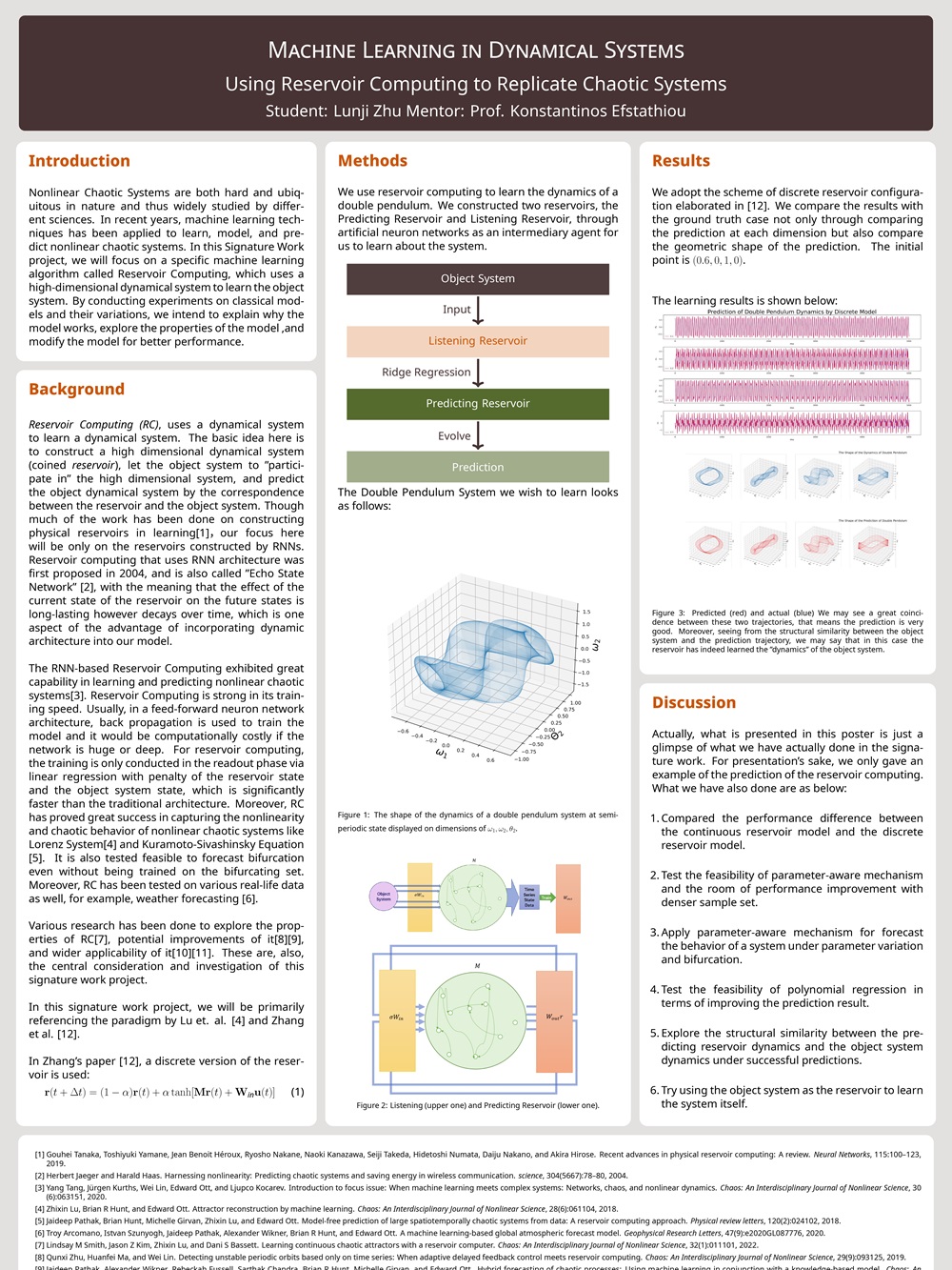 Nonlinear Chaotic Systems are both hard and ubiquitous in nature and thus widely studied by different sciences. In recent years, machine learning techniques has been applied to learn, model, and predict nonlinear chaotic systems. In this Signature Work project, we will focus on a specific machine learning algorithm called Reservoir Computing, which uses a high-dimensional dynamical system to learn the object system. By conducting experiments on classical models and their variations, we intend to explain why the model works, explore the properties of the model ,and modify the model for better performance.