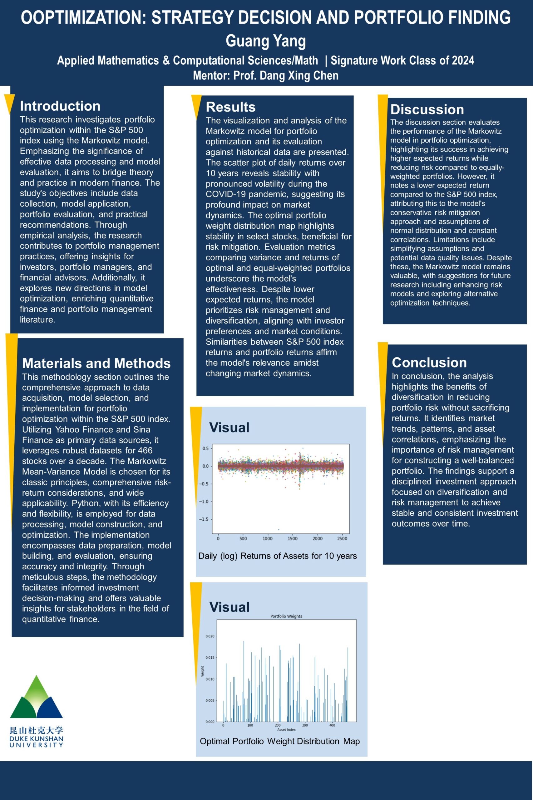 My name is Guang Yang. I am from class of 2024. My major is Applied Mathematics, and my signature work is related to portfolio optimization.