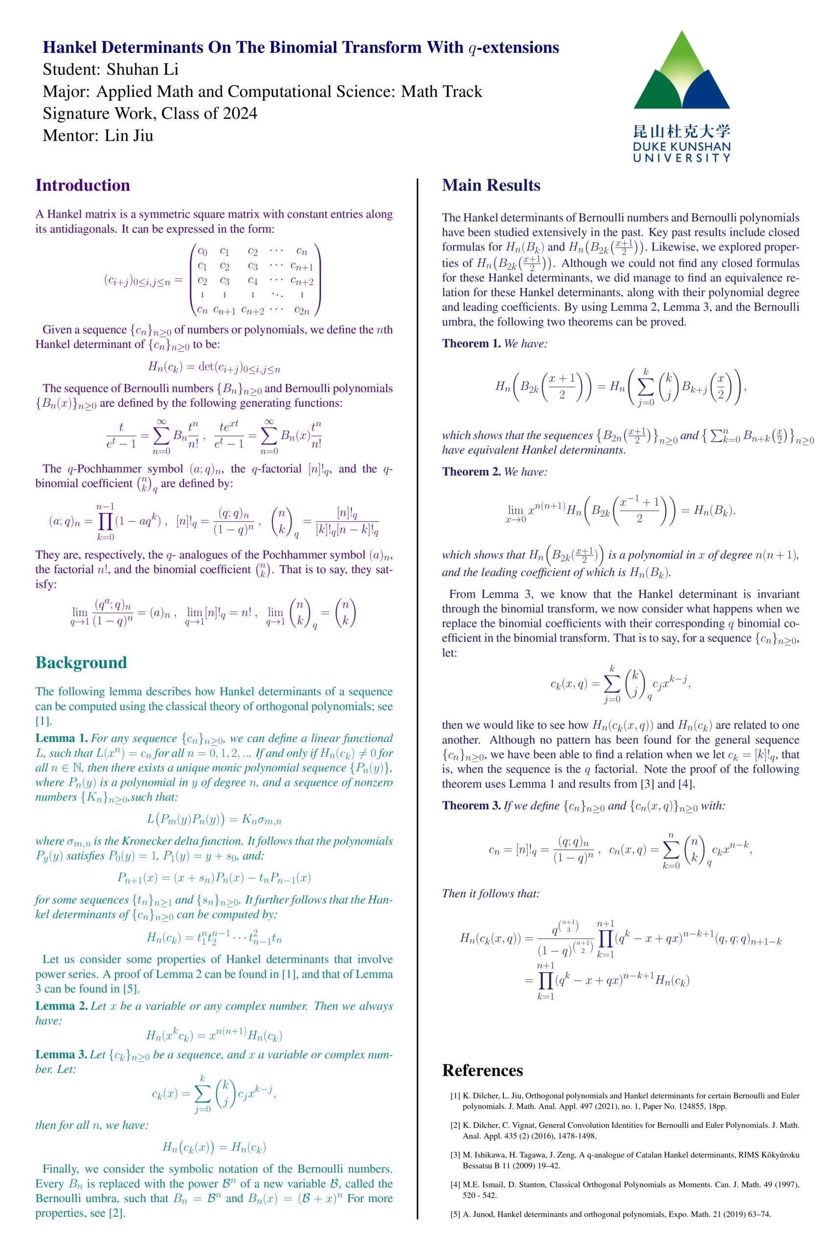 Senior at DKU majoring in Applied Math and Computational Science: Math Track.