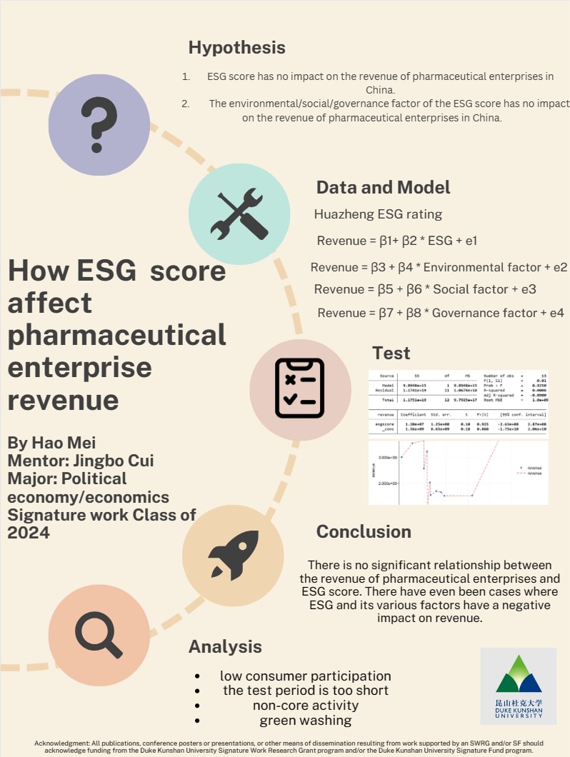 This paper explores the relationship between the revenue of pharmaceutical companies and ESG score with its factors. Despite the growing emphasis on ESG as a catalyst for achieving immediate growth, evidence from the pharmaceutical sector suggests a more nuanced impact on revenue. This study explores the underlying reasons why ESG initiatives may not directly contribute to immediate financial gains in this industry and provides corresponding policy recommendations.