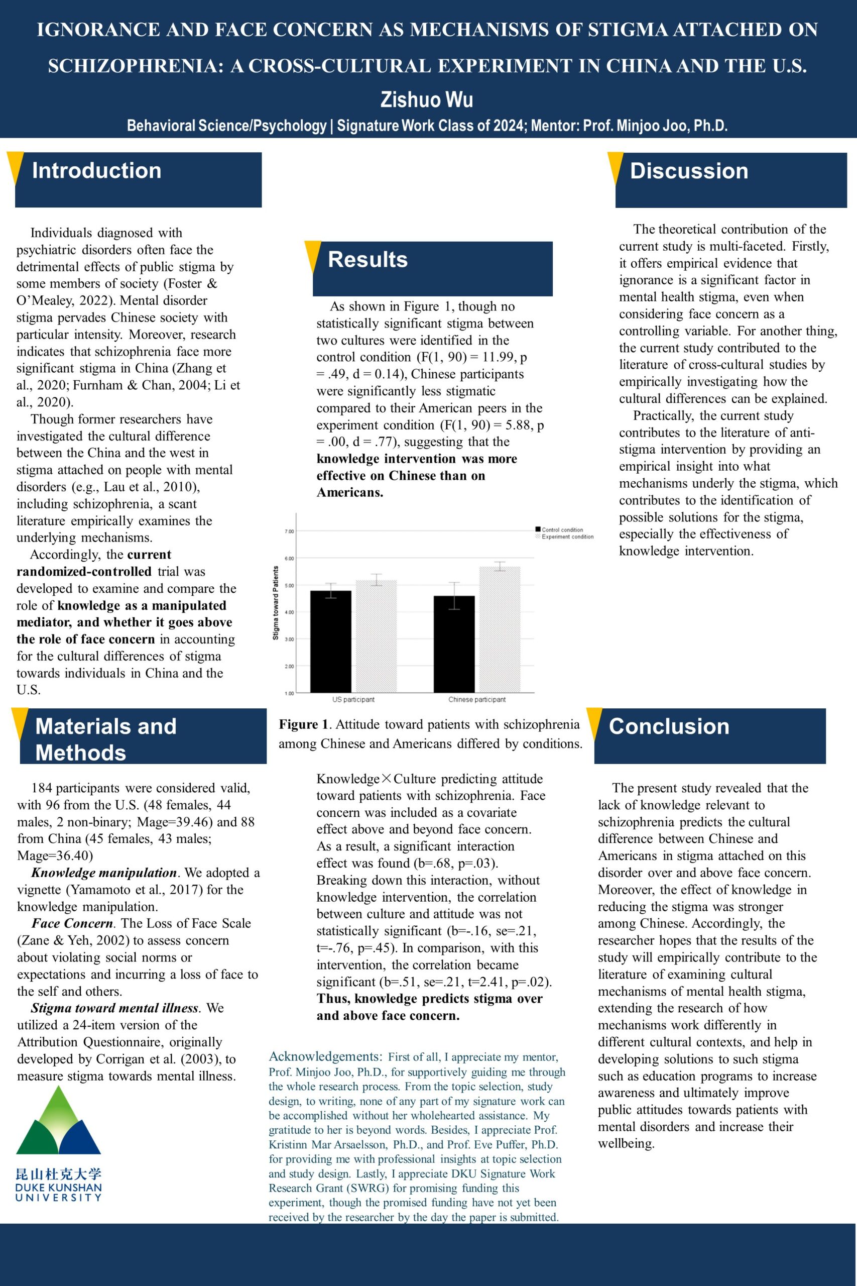 The extents and mechanisms of mental health stigma varies intensely between the eastern culture and the western culture, while empirical insights are scarce. Also, stigma on schizophrenia is more intense than which on other forms of mental disorders. The present experiment examined cultural differences on stigma toward schizophrenia among Chinese and Americans (N = 184), with a pivotal focus on whether a knowledge intervention would alleviate stigma controlling for face concerns. No significant cultural differences were found in the mean levels when knowledge interventions were absent, while the Chinese participants reported lower levels of stigma than Americans with the interventions present. In addition, the strengths of paths from knowledge intervention to stigma was significant controlling for face concerns. These findings empirically revealed the mean level and underlying mechanisms of cultural differences in mental health stigma and went beyond to unpackage the observed differences by testing the mediating role of different cultural values. Some underlying mechanisms were more significant than others. We discussed theoretical and practical implications of the findings in the discussion.