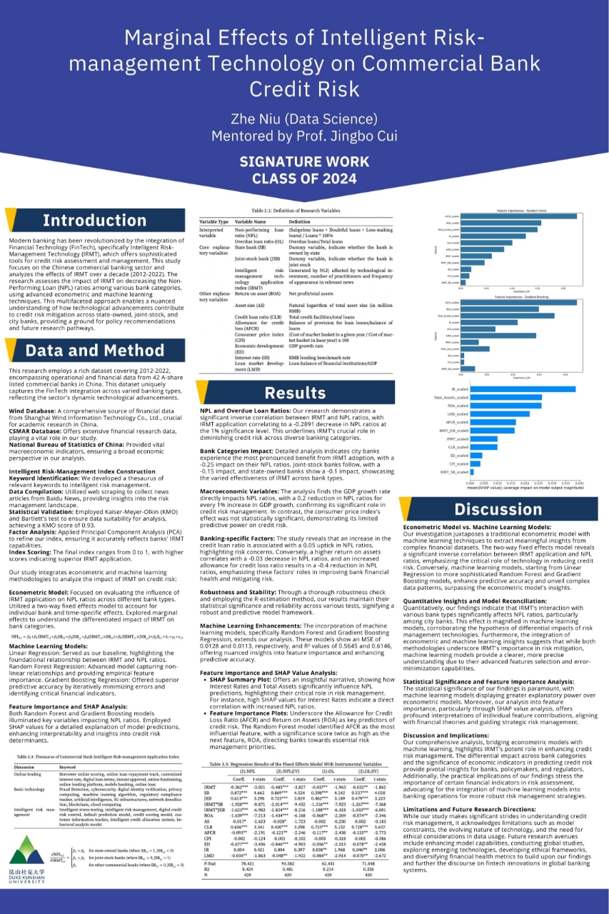 Zhe Niu, Data Science major at DKU, focuses on FinTech innovations and their impact on credit risk management in commercial banking.