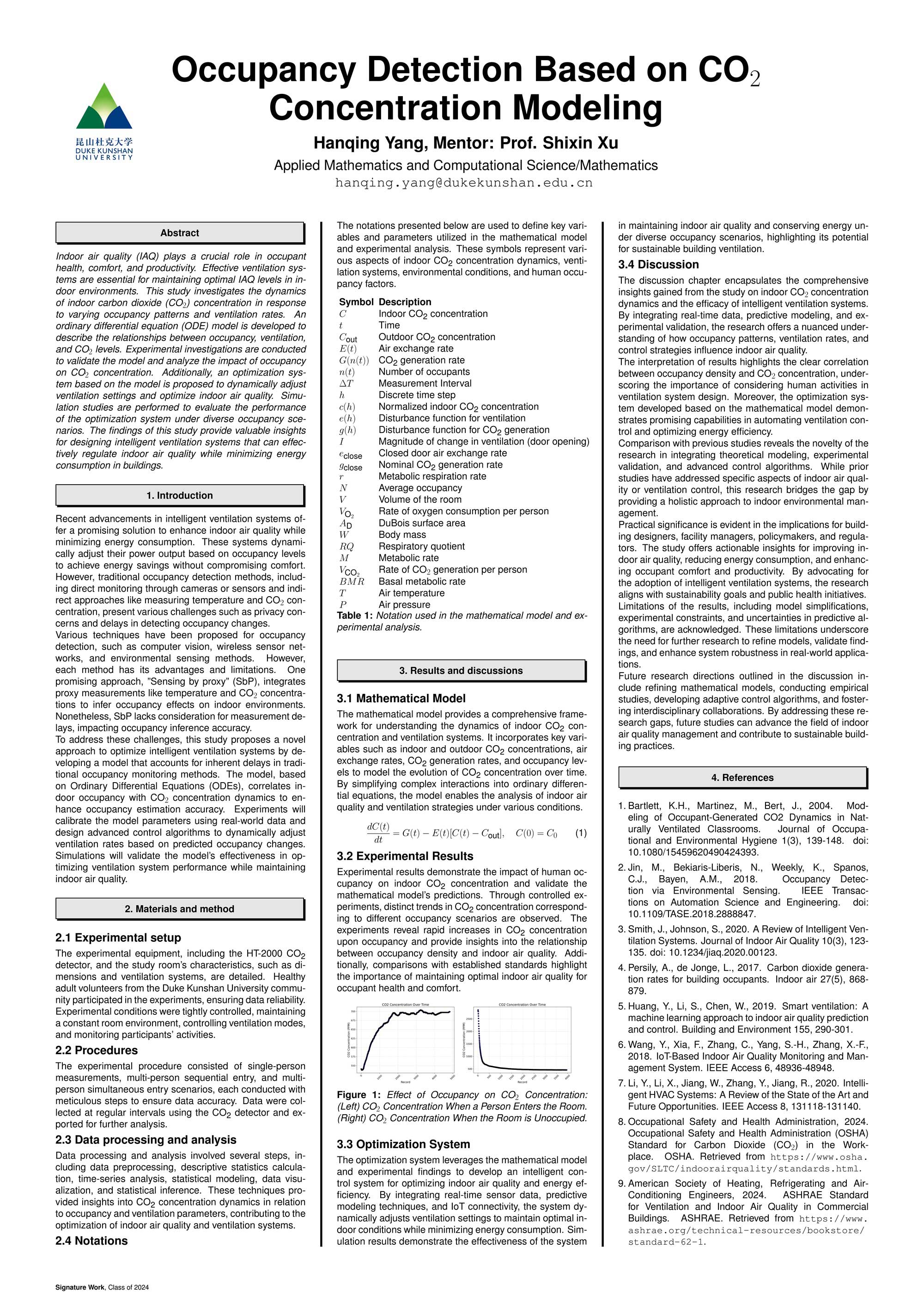 1. Creation of ODE-based models to describe the dynamics of indoor CO$_2$ concentration in response to varying occupancy levels and ventilation rates.