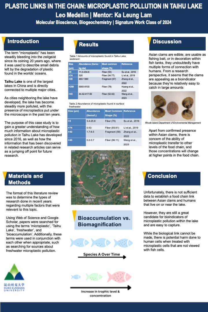 A case study over the past 8 years of sampling that has been done of microplastic abundances in Taihu Lake, China. A literature review of related papers and supporting information also considered the possibility of forming a link between Taihu Lake and human health, as well as whether the Asian clam can be considered a viable bioindicator for pollution within the lake.