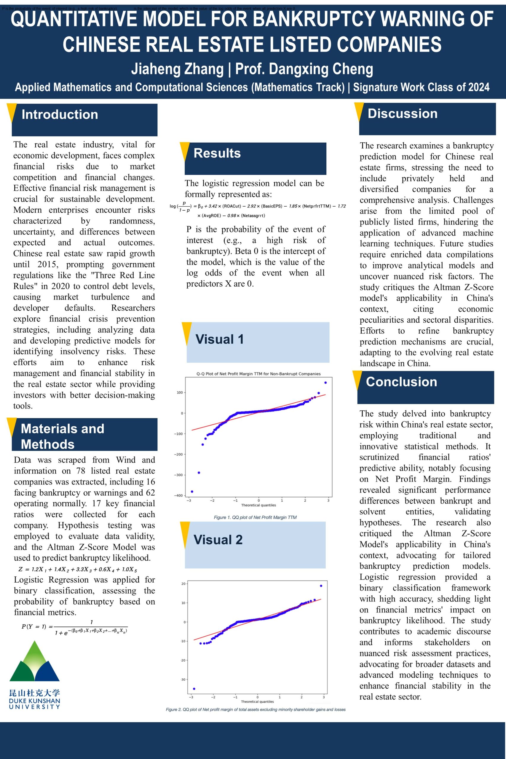This study undertakes a comprehensive analysis of bankruptcy risks in the Chinese real estate sector, blending traditional models and modern statistical methods to identify key factors influencing bankruptcy risk. The research findings highlight a significant disparity in financial performance, as demonstrated by the Net Profit Margin and ‘Net profit margin of total assets excluding minority shareholder gains and losses,’ confirming the hypothesis that certain financial indicators are pivotal for bankruptcy prediction. The study also critically assesses the Altman Z-Score Model, revealing its limitations due to the unique aspects of China’s real estate market, such as prevalent debt financing and specific national policies. This necessitates a localized approach to bankruptcy risk assessment, advocating for customized models that accurately mirror the sector’s financial landscape. Furthermore, the logistic regression analysis refines the bankruptcy prediction model, achieving high accuracy in distinguishing between high-risk and low-risk companies, supported by performance metrics like accuracy, precision, recall, and F1-score. This research enriches academic discussions on bankruptcy prediction and offers valuable insights for real estate sector stakeholders, emphasizing the importance of adapting models to local market dynamics for enhanced risk assessment. Ultimately, it advocates for a nuanced, data-informed approach to bankruptcy risk analysis.